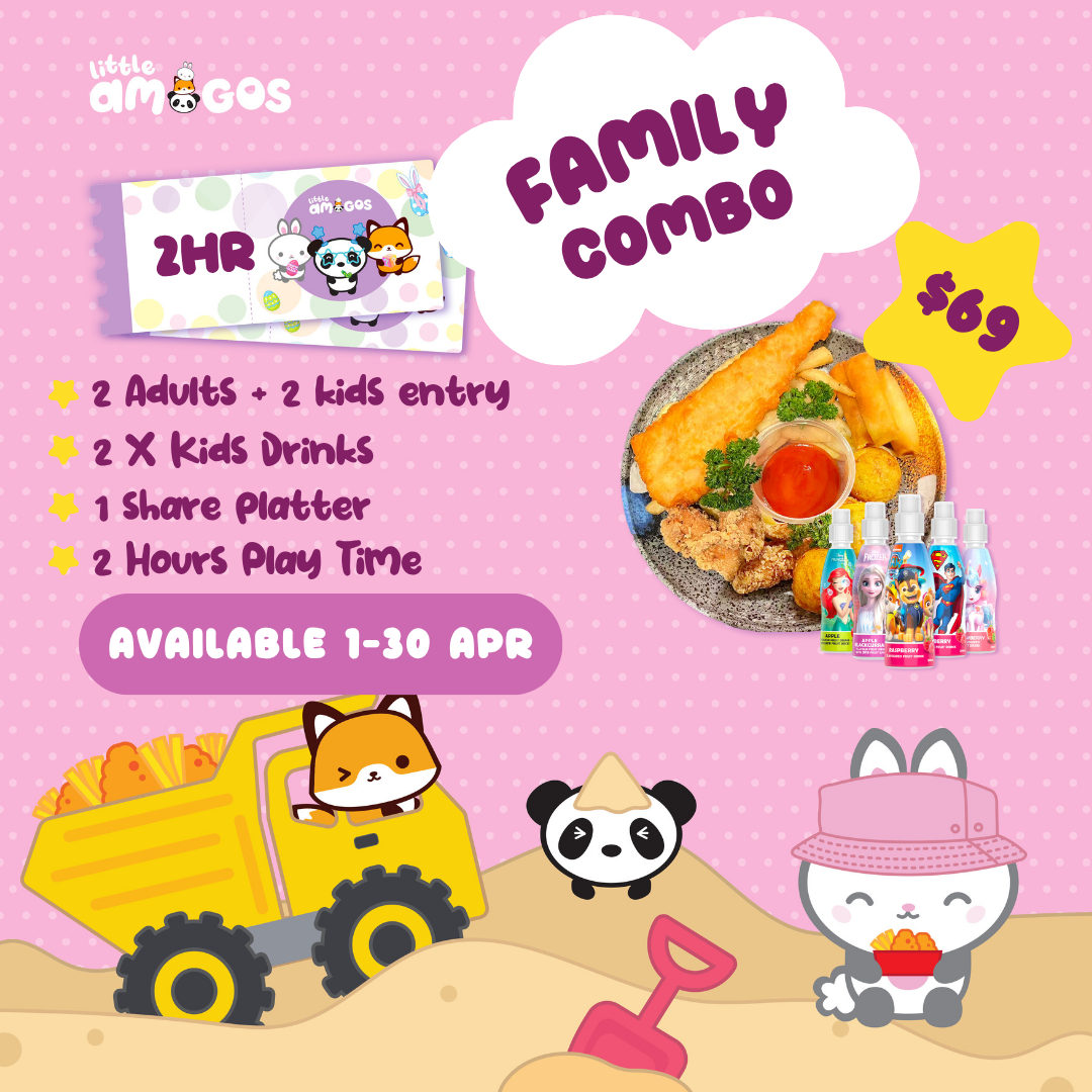T&C’s apply. T&Cs apply. Available 1–30 April 2026 only. Online bookings only. Includes 2 kids entry, 2 kids drinks, 1 share platter, 2 hours of play, and entry for 2 accompanying adults. Subject to availability. Not valid with other offers.